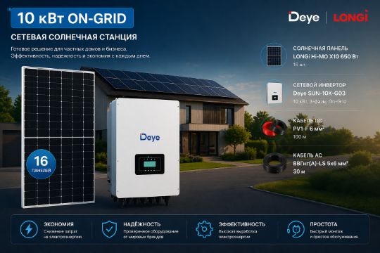 солнечная электросанция 10 кВт-сетевая(on-grid)