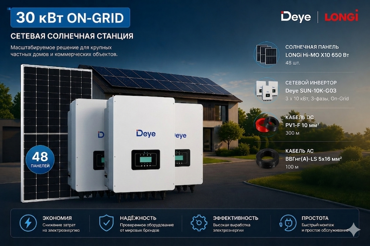 Солнечная электросанция 30 кВт-сетевая(on-grid)